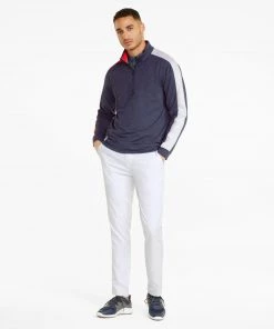 PUMA Men’s Volition United T7 Golf 1/4 Zip Navy Blazer Htr/brght Wht